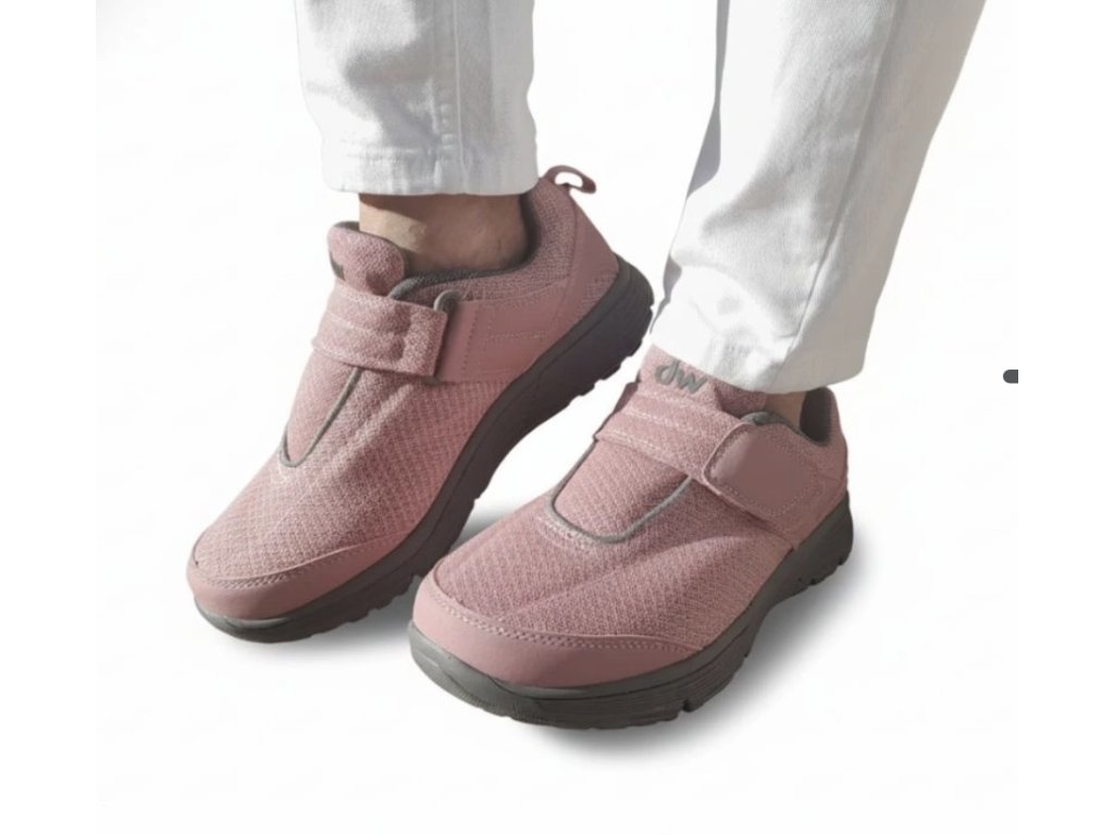 Trápí vás citlivá nebo oteklá chodidla? Potřebujete boty, které nebudou tlačit a které se snadno obouvají i při změně objemu nohy? Diawin Pink Punch je určená pro ženy, které hledají bezpečné a příjemné boty pro každodenní pohyb. Nabízí širší střih a šíři G, aby prsty měly dostatečný prostor. Textilní svršek v růžovém odstínu je měkký a prodyšný, antibakteriální podšívka pomáhá udržet nohy suché. Vyjímatelná stélka umožní vložit vlastní stélku a suchý zip usnadňuje obouvání.